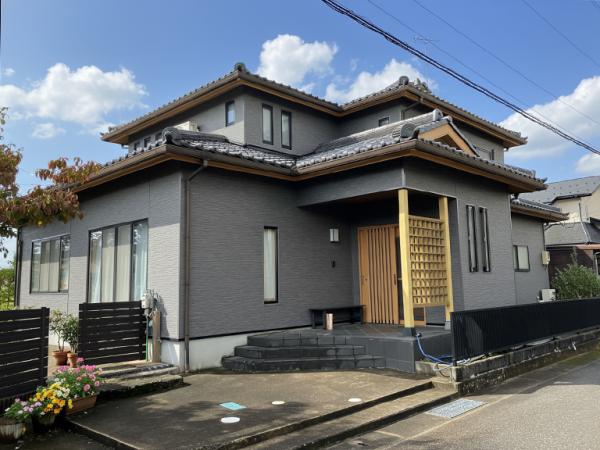 伝統的な美しさと現代的なデザインが融合した和モダンな建物を、最大限に引き立てるため、深みのある上品な外壁色をご提案いたしました。
