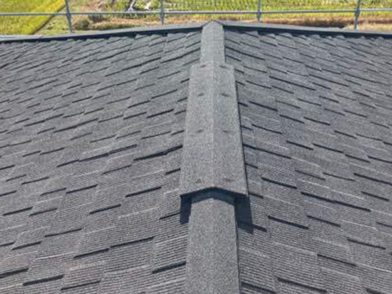 既存の屋根を撤去せず、その上から新しい屋根材を被せる「カバー工法」で施工しました。使用した「DECRA セネター(カラー:サーブル)」は、天然石チップ仕上げによる重厚感と、軽量で建物への負担が少ないのが特長です。新築のような美しい外観を取り戻し、耐久性も大幅に向上しました。